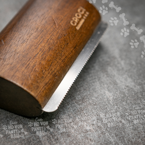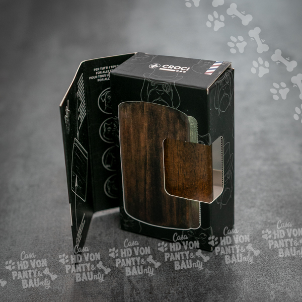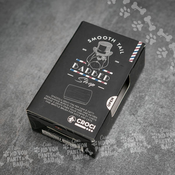 La Spazzola a denti stretti della linea Barbershop รจ realizzata con acciaio inox, per permettere la rimozione del pelo in eccesso del tuo cucciolo senza irritare la pelle dellโanimale.