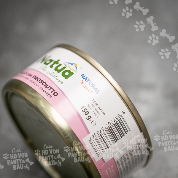 Pollo 62% – Prosciutto 4% – Riso 1.6% – Olio di semi di girasole 1.5%