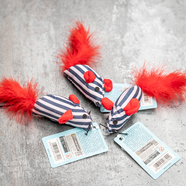 Sailor Mice RIGHE รจ un giochino per gatti arricchiti da erba gatta a forma di pesciolini dal colore iridescente. Con questi simpatici giochini renderai le giornate del tuo micio molto piรน divertenti, la presenza di erba gatta allโ€™interno del gioco stimolerร  il tuo amico felino attraendolo ed incuriosendolo.