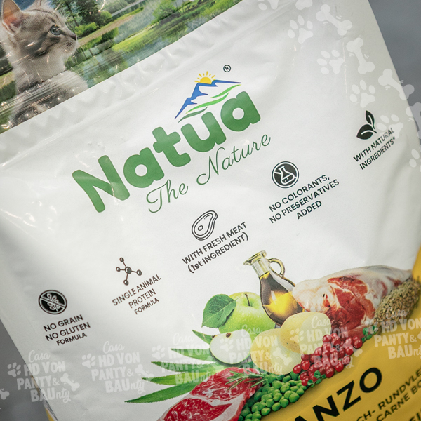 Disponibile in sacchi ermetici che ne conservano la qualitร a lungo, i prodotti Natua Dry Line sono pensati per gatti di ogni etร ed esigenza: adulti, cuccioli e sterilizzati.